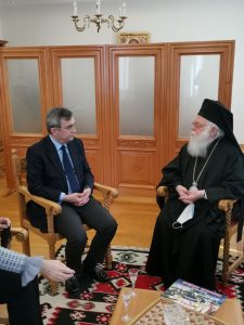 Με αφορμή την παρουσία του στα Τίρανα ο Υφυπουργός Προστασίας του Πολίτη κ. Οικονόμου είχε συνάντηση τη Δευτέρα 14 Μαρτίου με τον Αρχιεπίσκοπο Αλβανίας, Μακαριώτατο κ. Αναστάσιο, από τον οποίο ενημερώθηκε για το σπουδαίο κοινωνικό έργο που επιτελεί η Ορθόδοξη Εκκλησία στην Αλβανία. Μάλιστα ο Έλληνας υφυπουργός συνοδευόμενος από τον Αρχιεπίσκοπο Αλβανίας πραγματοποίησε προσκυνηματική επίσκεψη στον εμβληματικό Ιερό Ναό της Αναστάσεως.