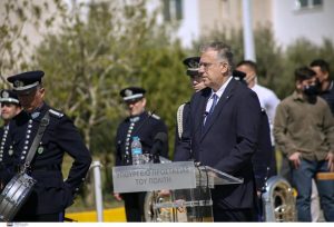 Στην τελετή παράδοσης – ανάληψης καθηκόντων του αρχηγού της Ελληνικής Αστυνομίας που πραγματοποιήθηκε στις εγκαταστάσεις της Σχολής Αξιωματικών της ΕΛ.ΑΣ. στην Αμυγδαλέζα, παρέστη σήμερα ο Υπουργός Προστασίας του Πολίτη Τάκης Θεοδωρικάκος, εκπροσωπώντας τον Πρωθυπουργό.