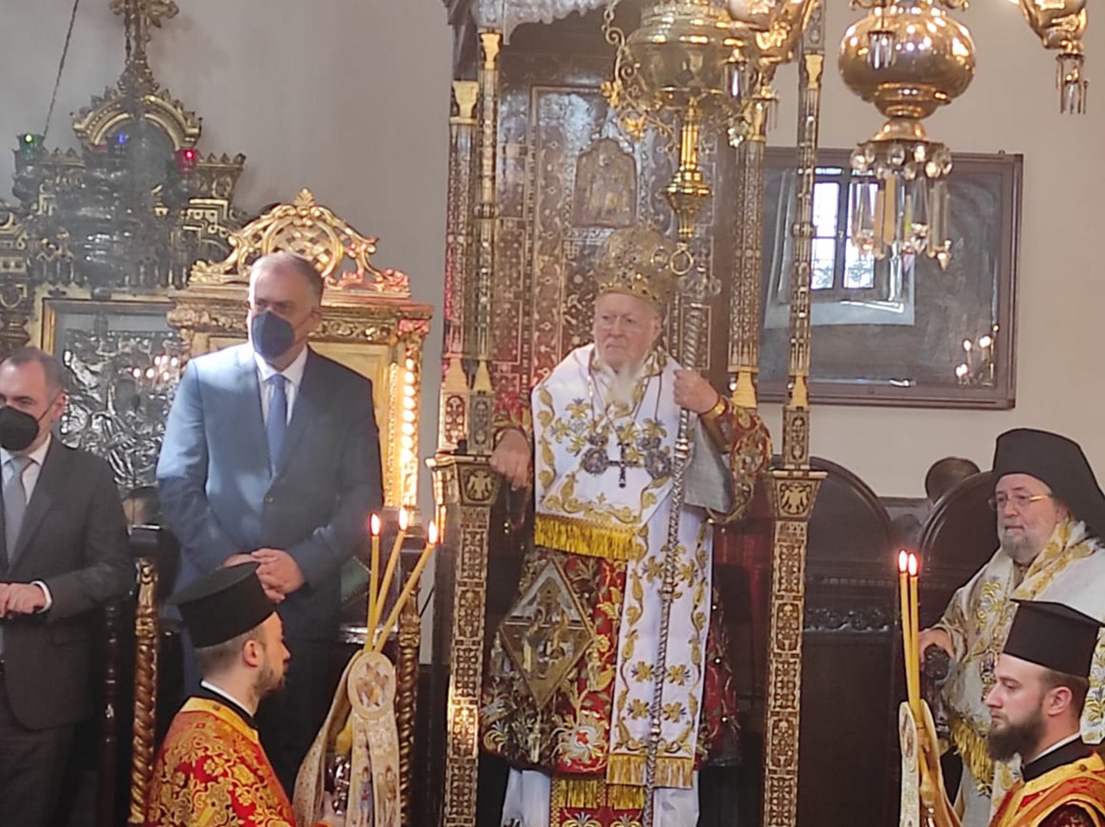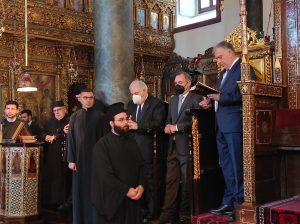 Ο Υπουργός Προστασίας του Πολίτη Τάκης Θεοδωρικάκος, συνεχίζοντας την προσκυνηματική του επίσκεψη στο Οικουμενικό Πατριαρχείο, παρέστη σήμερα, Μεγάλη Πέμπτη, στη Συνοδική Πατριαρχική Θεία λειτουργία που τελέσθηκε από τον Οικουμενικό Πατριάρχη κ.κ. Βαρθολομαίο στον Πατριαρχικό Ναό του Αγίου Γεωργίου στο Φανάρι, για τον καθαγιασμό του Αγίου Μύρου.