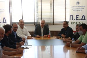 Ακολούθως, ο Υπουργός επισκέφθηκε την Περιφερειακή Ένωση Δήμων Κρήτης, όπου τον υποδέχτηκε ο πρόεδρος Γιάννης Κουράκης και Δήμαρχοι από όλη την Κρήτη. Τελευταίος σταθμός στην περιοδεία του κ. Θεοδωρικάκου στο Ηράκλειο ήταν τα γραφεία της Δ.Ε.Ε.Π Ηρακλείου όπου συζήτησε με στελέχη της Νέας Δημοκρατίας