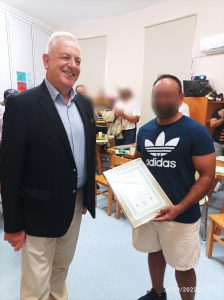 Εν συνεχεία, είχε την ευκαιρία να παρακολουθήσει μαθήματα εκπαίδευσης στο σχολείο δεύτερης ευκαιρίας του Καταστήματος, να συνομιλήσει με τον αρμόδιο εκπαιδευτικό λειτουργό και τους μαθητές – κρατουμένους και να διαπιστώσει την πολύ καλή δουλειά πού γίνεται στον συγκεκριμένο τομέα.