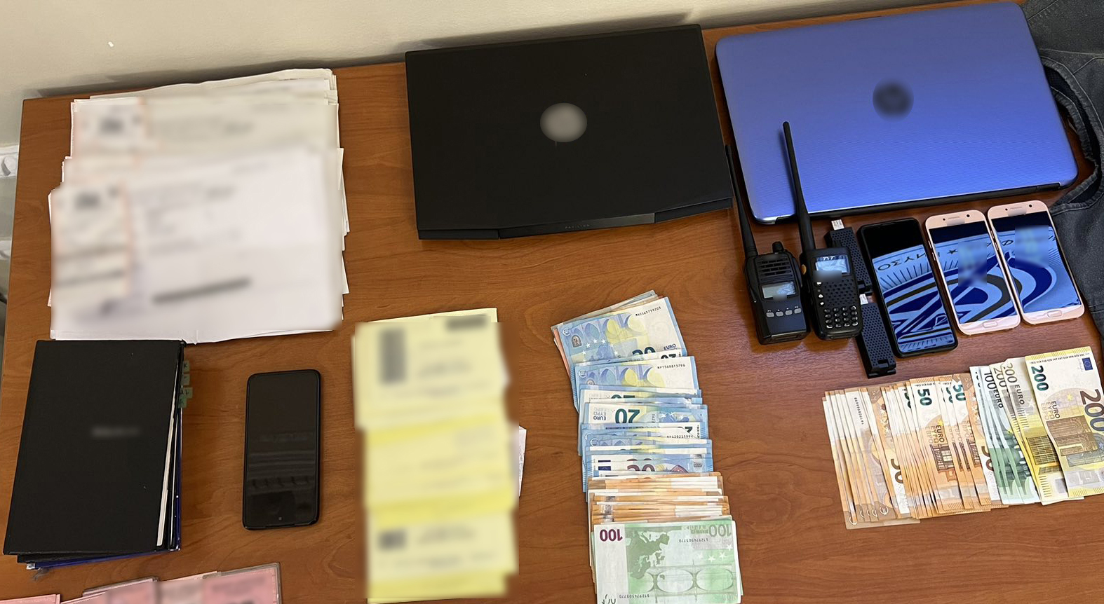 Κατασχέθηκαν πλήθος ακουστικών τύπου «ψείρα», καλώδια, ασύρματοι, ειδικά διαμορφωμένος ρουχισμός, 52.295 ευρώ και κερδισμένα δελτία τυχερών παιγνίων κέρδους 63.000 ευρώ