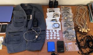 - πλήθος ακουστικών τύπου «ψείρα», καλωδίων, ασύρματων φορητών πομποδεκτών, αδειών οδήγησης, σφραγίδες ιατρών,