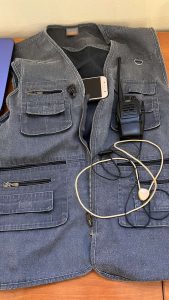 - 33 μπλούζες και γιλέκα διαφόρων μεγεθών, ειδικά διαμορφωμένα για την τοποθέτηση τεχνικού οπτικοακουστικού εξοπλισμού,