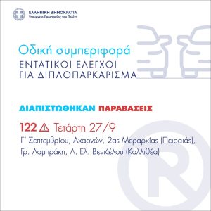 Υλοποίηση νέου ολιστικού σχεδίου για την οδική ασφάλεια: 321 βεβαιώσεις παραβάσεων για διπλοπαρκάρισμα τις τελευταίες 3 μέρες – Συνεχίζονται οι εντατικοί έλεγχοι σε Αθήνα και Πειραιά