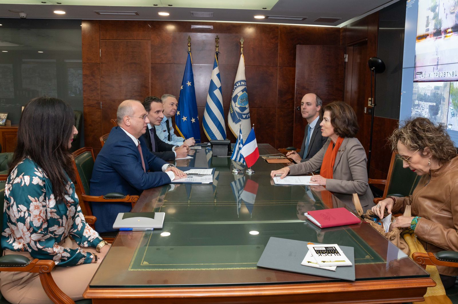 Ο Υπουργός και η Γαλλίδα Πρέσβης αντάλλαξαν απόψεις γύρω από την αξιοποίηση των νέων τεχνολογιών, ιδίως των καμερών, τόσο για την τροχαία αστυνόμευση όσο και για την πρόληψη και καταστολή της εγκληματικότητας.
