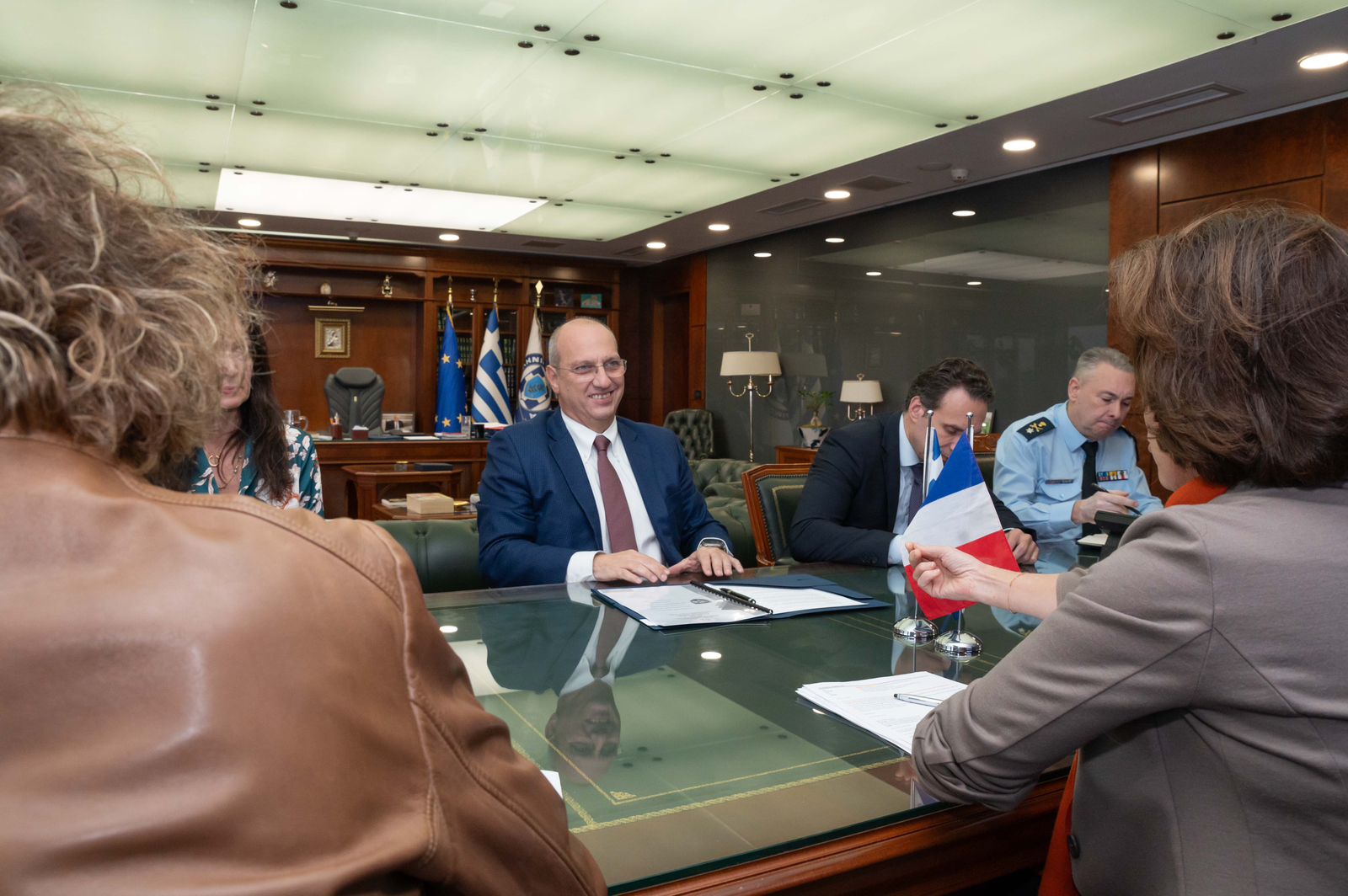 Συνάντηση εργασίας του Υπουργού Προστασίας του Πολίτη, κ. Γιάννη Οικονόμου, με την Πρέσβη της Γαλλίας στην Ελλάδα, κα. Laurence Auer
