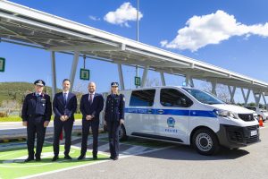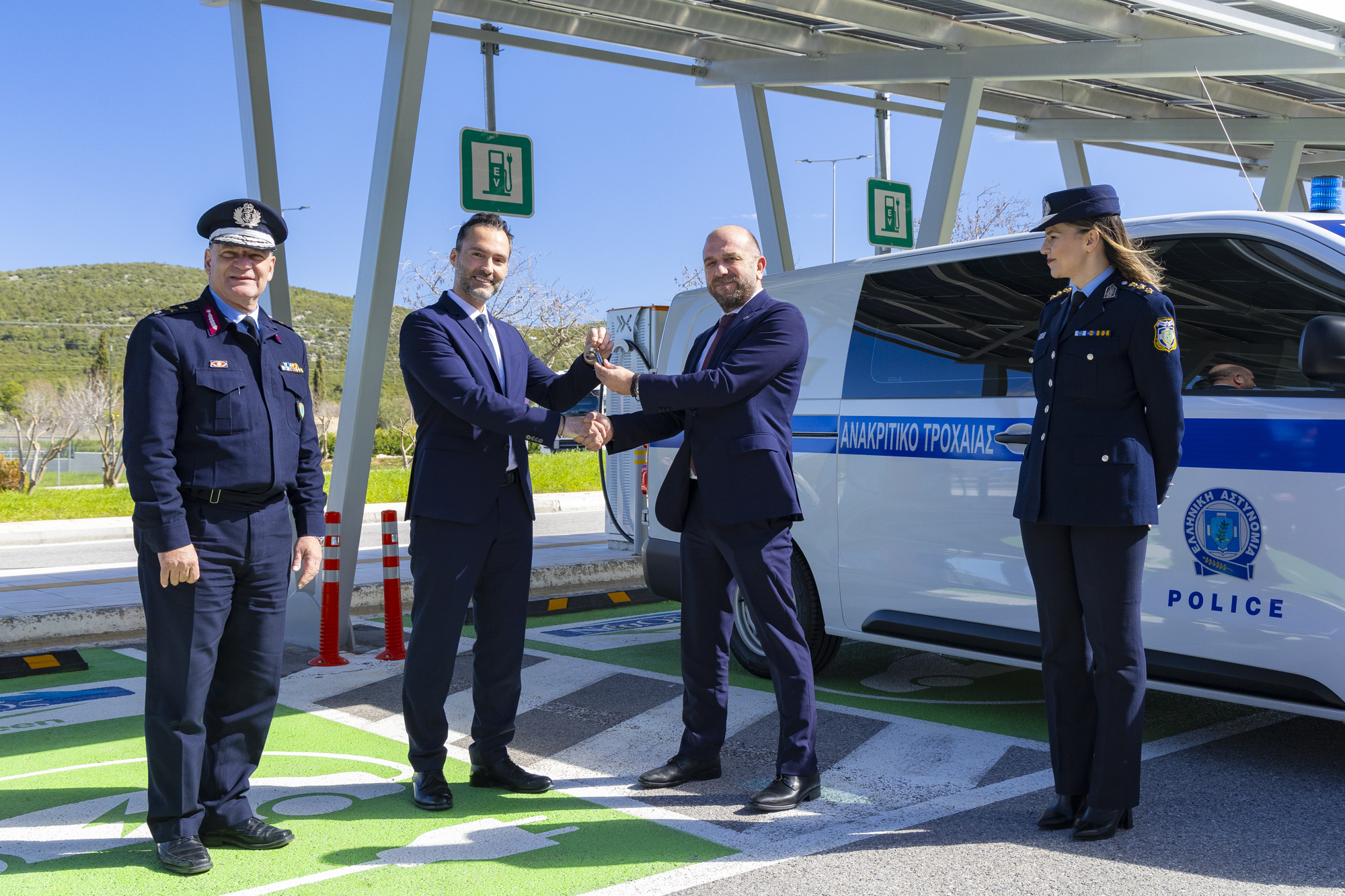 Παρουσία του Γενικού Γραμματέα Δημοσίας Τάξης, Μάνου Λογοθέτη, παρελήφθη την Τετάρτη 13 Μαρτίου 2024, από την εταιρεία «Νέα Οδός», το πρώτο ηλεκτρικό όχημα τύπου VAN -υπηρεσιακού χρωματισμού-, το οποίο εντάσσεται στον στόλο της Ελληνικής Αστυνομίας για τις ανάγκες αστυνόμευσης του αυτοκινητοδρόμου.