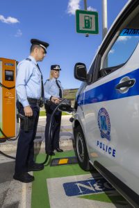 Για «πράσινη» μετάβαση της Ελληνικής Αστυνομίας και ειδικά της Τροχαίας έκανε λόγο ο Γενικός Γραμματέας Δημόσιας Τάξης παραλαμβάνοντας το σύγχρονο ηλεκτρικό όχημα, που θα καλύψει τις υπηρεσιακές ανάγκες του Β’ Τμήματος Τροχαίας Αυτοκινητοδρόμων Π.Α.Θ.Ε. Αττικής. Αξίζει να σημειωθεί ότι, πρόκειται για το πρώτο ηλεκτρικό όχημα- περιπολικό που κυκλοφορεί σε αυτοκινητόδρομο, διαθέτοντας αυτονομία περίπου 320 χιλιομέτρων.