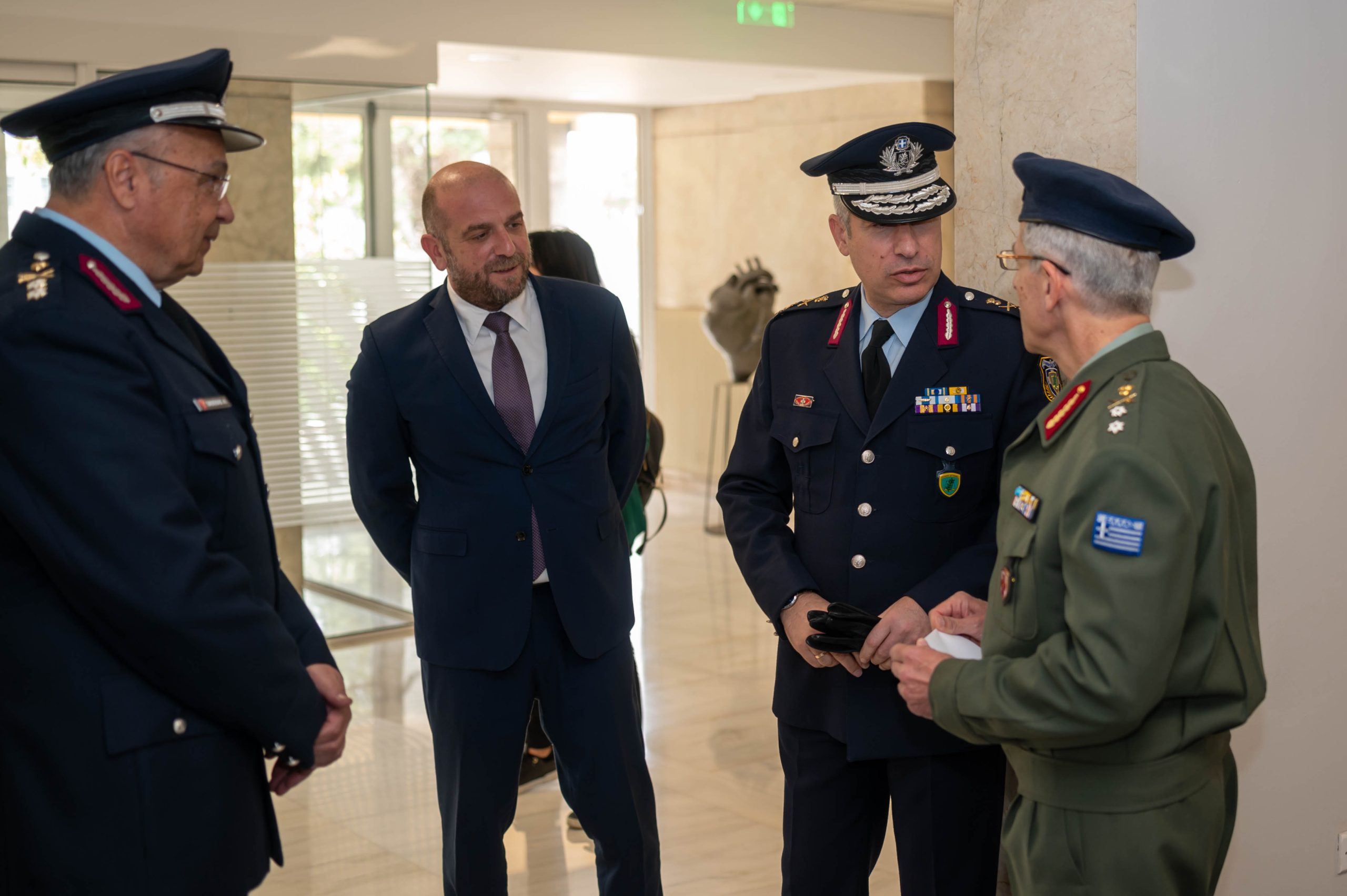 Τους συνόδευσαν ο Αρχηγός της Ελληνικής Αστυνομίας, Αντιστράτηγος Δημήτριος Μάλλιος, ο Προϊστάμενος του Κλάδου Διοικητικής Υποστήριξης και Ανθρώπινου Δυναμικού του Αρχηγείου Ελληνικής Αστυνομίας, Υποστράτηγος Δημήτριος Μπακόλας και ο Διευθυντής της Διεύθυνσης Υγειονομικού, Υποστράτηγος (ΥΓ) Αθανάσιος Μπαδέκας.