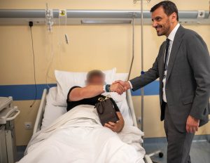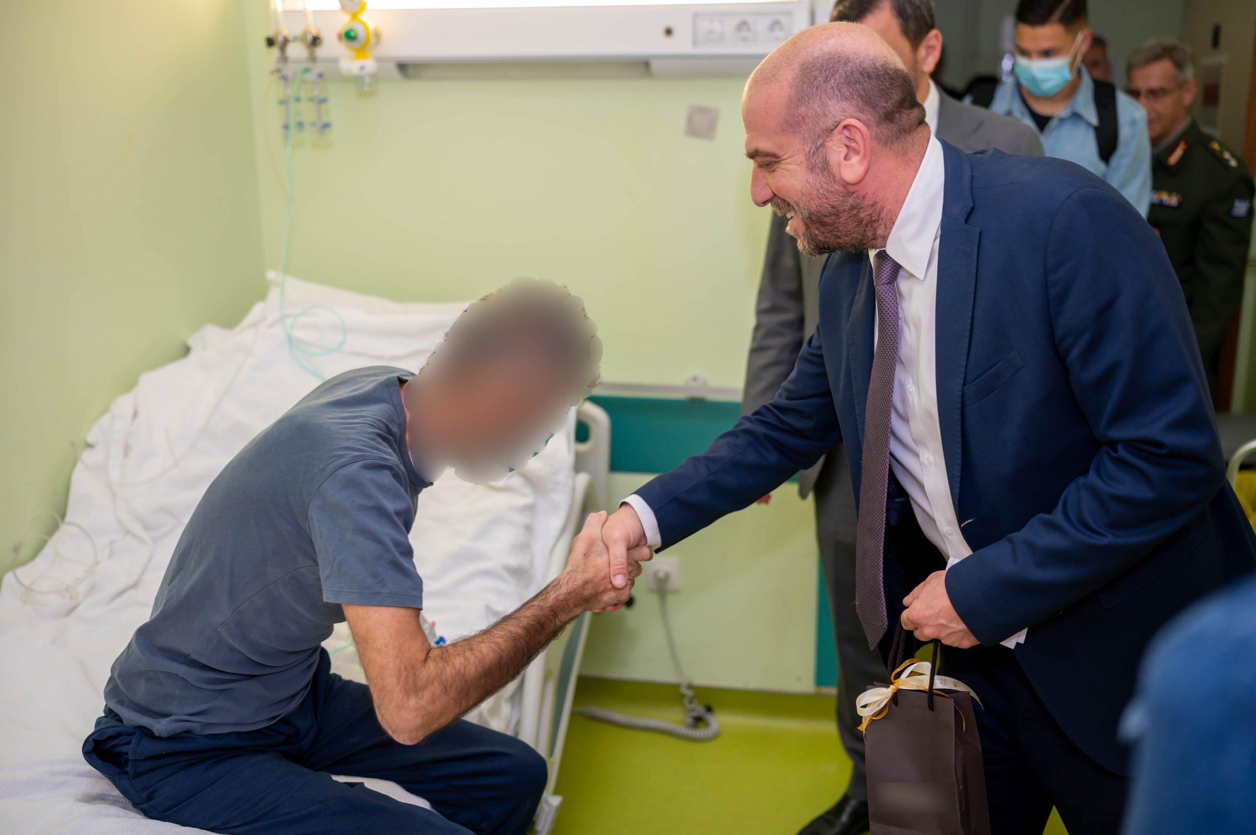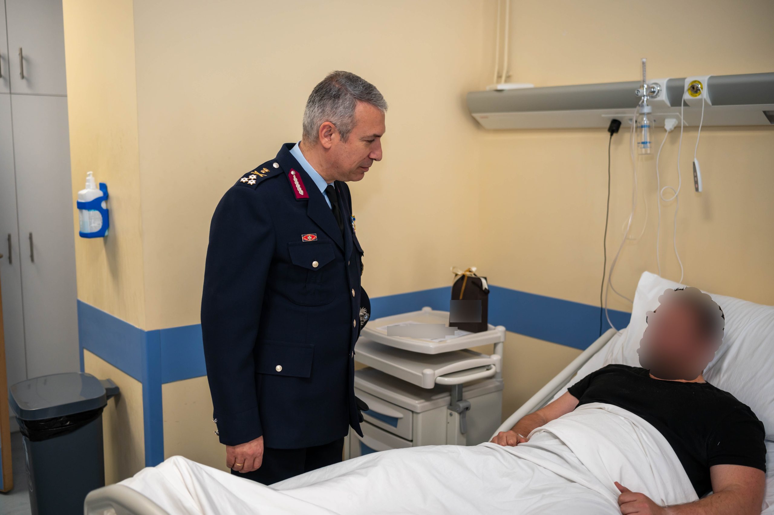 Στους νοσηλευόμενους αστυνομικούς προσέφεραν συμβολικά δώρα και τους ευχήθηκαν ταχεία ανάρρωση, ενώ ενημερώθηκαν από τους θεράποντες ιατρούς για την κατάσταση της υγείας τους.