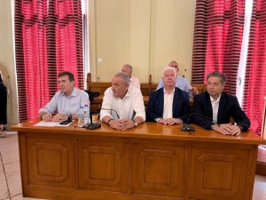 Στη συνέχεια ο Υπουργός Προστασίας του Πολίτη προήδρευσε σύσκεψης στην οποία συμμετείχαν, μεταξύ άλλων, ο Βουλευτής Ζακύνθου, Διονύσης Ακτύπης, ο Περιφερειάρχης Ιονίων Νήσων, Γιάννης Τρεπεκλής, ο Δήμαρχος Ζακύνθου Γιώργος Στασινόπουλος, ο Πρόεδρος του Λαγανά, ο Επικεφαλής της Λιμενικής Αρχής Ζακύνθου, Εκπρόσωποι της Περιφέρειας, του Ξενοδοχειακού Επιμελητηρίου Ελλάδος και των Ξενοδόχων Ζακύνθου, των επιχειρηματικών Συλλόγων, όπως και του Επιμελητηρίου Ζακύνθου και των Ραδιοταξί.