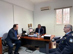 Αρχικά, ο κ. Υφυπουργός επισκέφθηκε τη Γενική Περιφερειακή Αστυνομική Διεύθυνση Ανατολικής Μακεδονίας και Θράκης, όπου παρουσία του Γενικού Περιφερειακού Αστυνομικού Διευθυντή, Υποστράτηγου Ιωάννη Καραμανλή και αρκετών ανώτατων και ανώτερων αξιωματικών της ΕΛ.ΑΣ., συμμετείχε σε ευρεία σύσκεψη, κατά την οποία συζητήθηκαν πολλά από τα σημαντικά θέματα που απασχολούν την ευρύτερη περιοχή, με τελικό στόχο την εμπέδωση ακόμη μεγαλύτερου αισθήματος ασφάλειας στους πολίτες.