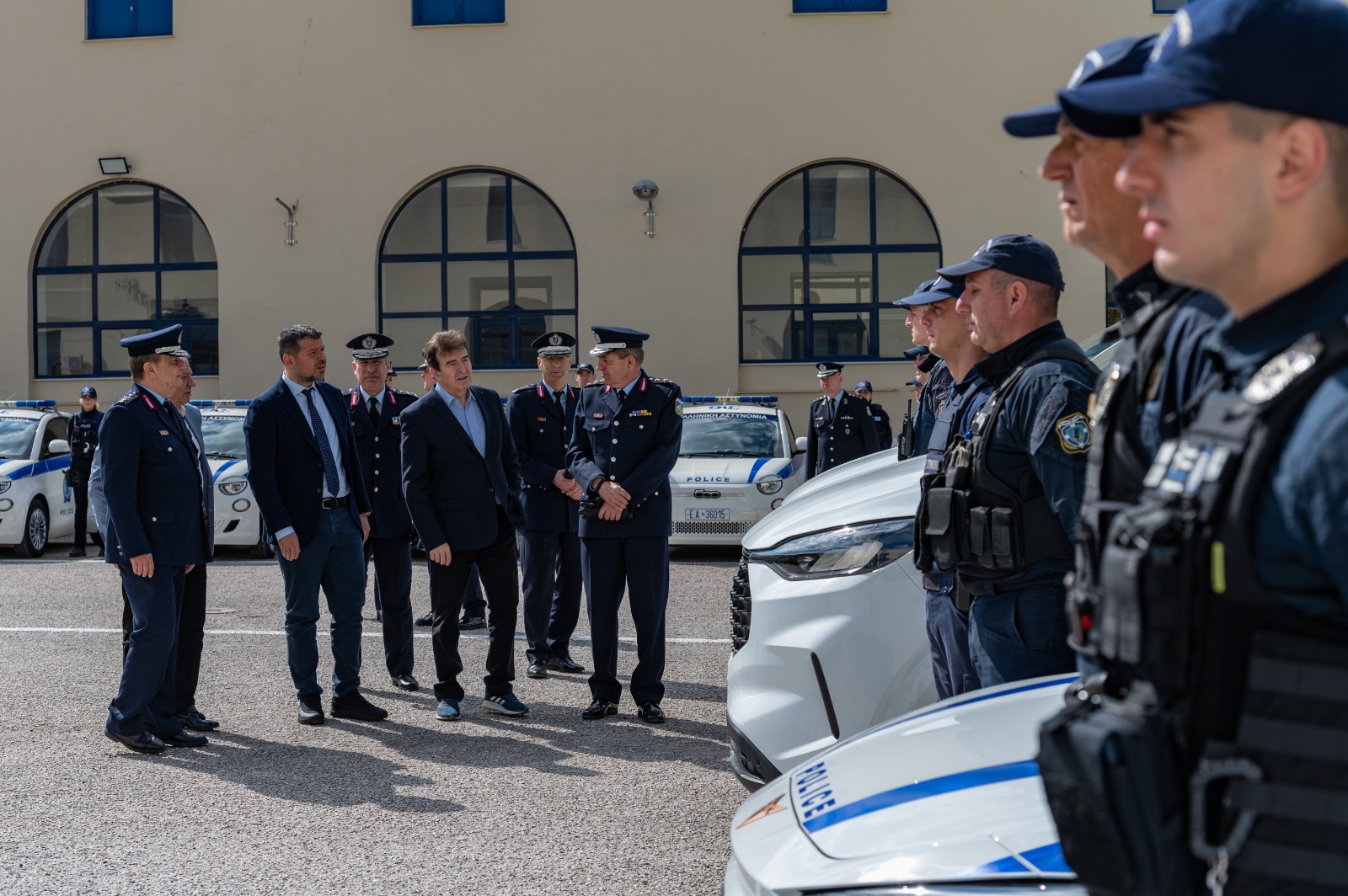 Ειδική τελετή για την παραλαβή, κυρίως ηλεκτροκίνητων, οχημάτων, δωρεά του Ομίλου ΔΕΗ, πραγματοποιήθηκε σήμερα, Παρασκευή 11 Απριλίου 2025, στις πρώην Σχολές της Αστυνομίας, παρουσία του Υπουργού Προστασίας του Πολίτη, Μιχάλη Χρυσοχοΐδη, του Προέδρου & Διευθύνοντος Συμβούλου Ομίλου ΔΕΗ, Γεώργιου Στάσση και του Αρχηγού της ΕΛ.ΑΣ, Αντιστράτηγου Δημήτριου Μάλλιου.