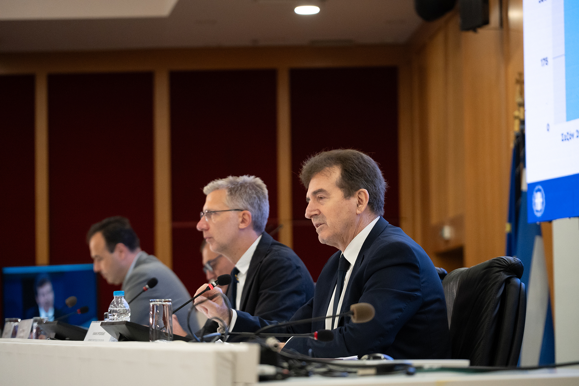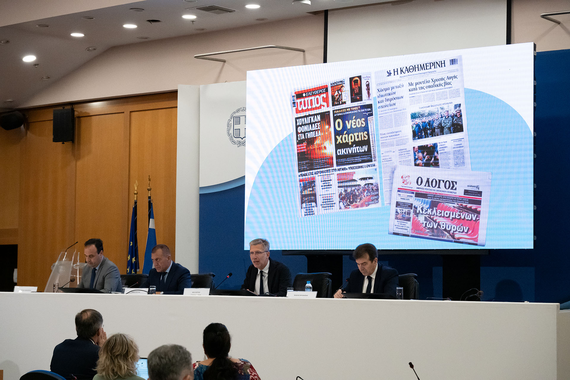 Διυπουργική Συνέντευξη Τύπου με τον απολογισμό των μέτρων για την πρόληψη και αντιμετώπιση της οπαδικής βίας τους τελευταίους 16 μήνες, με τη συμμετοχή των Υπουργών Προστασίας του Πολίτη Μιχάλη Χρυσοχοΐδη, Ψηφιακής Διακυβέρνησης Δημήτρη Παπαστεργίου και του αναπληρωτή Υπουργού Αθλητισμού Γιάννη Βρούτση, πραγματοποιήθηκε σήμερα, Τετάρτη 2 Ιουλίου 2025, στο Υπουργείο Ψηφιακής Διακυβέρνησης.