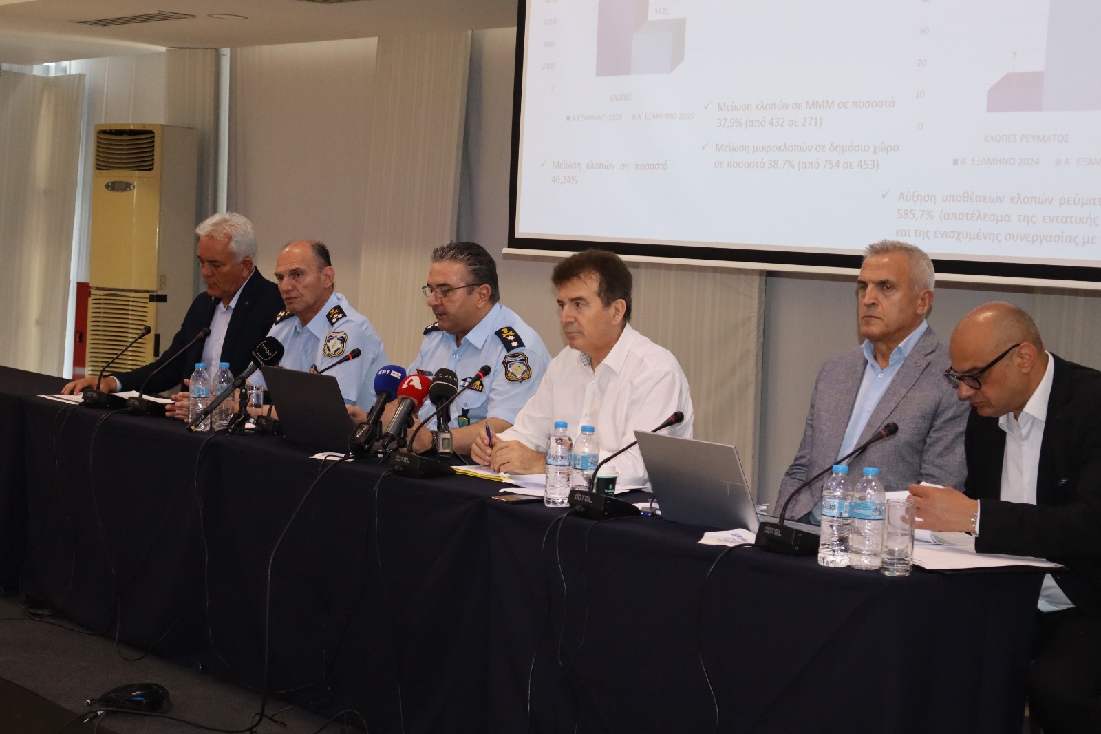 Στη  μείωση της εγκληματικότητας, σε όλους τους τομείς, αναφέρθηκε ο Διευθυντής της Γενικής Αστυνομικής Διεύθυνσης Θεσσαλονίκης, Υποστράτηγος Γεώργιος Τζήμας, ο οποίος έκανε την αναλυτική παρουσίαση του απολογισμού του αστυνομικού έργου στον Νομό για το πρώτο εξάμηνο του 2025. «Στην περιοχή αρμοδιότητας Γ.Α.Δ.Θ. παρουσιάζεται σημαντική μείωση της εγκληματικότητας στους βασικούς δείκτες της, γεγονός που επιφέρει πολλαπλά και ενισχυόμενα οφέλη στην κοινωνία, τονώνοντας δραστικά το αίσθημα ασφάλειας των πολιτών» ανέφερε. Ειδικότερα, σε ό,τι αφορά στις κλοπές το πρώτο εξάμηνο του 2025 σε σχέση με το πρώτο εξάμηνο του 2024 παρουσιάζεται μείωση 46,24% (από 6.550 μειώθηκαν σε 3.521),ειδικά σε Μέσα Μαζικής Μεταφοράς και σε δημόσιους χώρους, κατά 31,4% σε διαρρήξεις και 22,1% σε κλοπές τροχοφόρων.