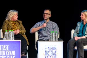 Η εκδήλωση ολοκληρώθηκε με τη συζήτηση, στην οποία συμμετείχαν επαγγελματίες της πρώτης γραμμής που μοιράστηκαν με το κοινό την πραγματική εικόνα της ενδοοικογενειακής βίας μέσα από την καθημερινή τους εμπειρία.