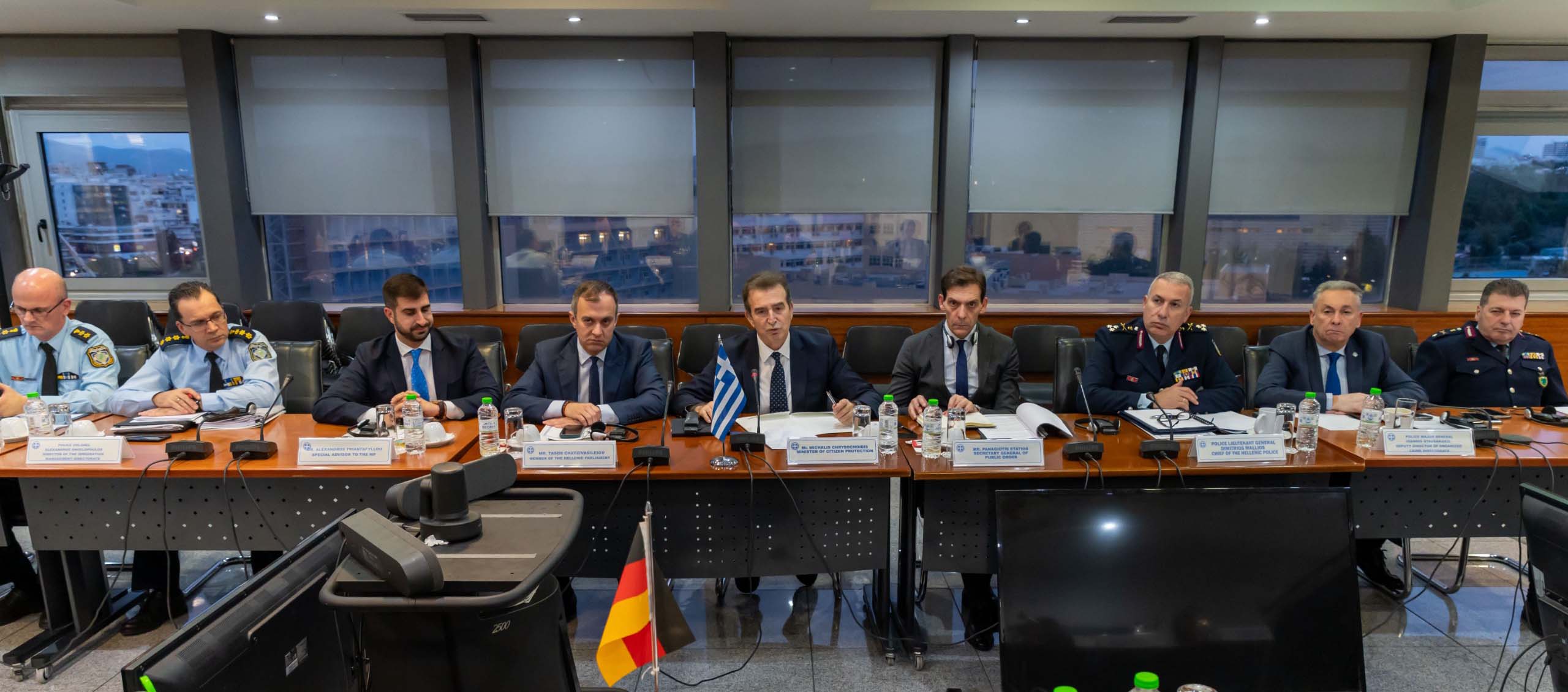 Στη συνάντηση παρέστησαν, επίσης, Υψηλόβαθμα Στελέχη της Κυβέρνησης της Έσσης και Αξιωματούχοι της Γερμανικής Κυβέρνησης, ενώ από την ελληνική πλευρά ήταν ο Γενικός Γραμματέας Δημόσιας Τάξης, Παναγιώτης Στάθης, ο Αρχηγός της ΕΛ.ΑΣ, Αντιστράτηγος Δημήτριος Μάλλιος, όπως και Ανώτεροι Αξιωματικοί της Ελληνικής Αστυνομίας.