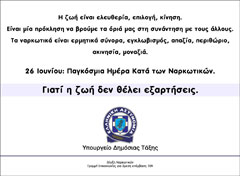 On the occasion of celebrating the Day against Drugs, the Minister of Public Order Mr. George Voulgarakis made the following statements: