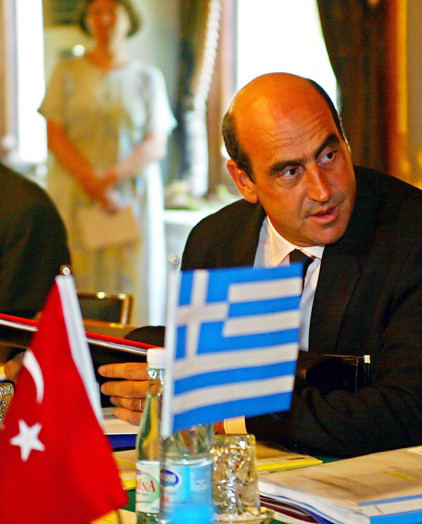 Greece’s Minister of Public Affairs Voulgarakis seen in a meeting with his Turkish counterpart in Istanbul
